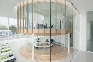The materialization is typically Westland-related: elements like plant beds in the surrounding area, as well as the use of glass and wood, refer to the glass city’s greenhouses. The furniture is upholstered in the colours of the Westland’s municipal logo. The atmosphere is open and intimate at the same time. Visitors feel welcome, also due to the hospitality of the staff. Along the Verdilaan, the building is in full interaction with its environment. Among other things due to its transparency and location in the heart of Naaldwijk, but also because of the integration of the municipal archive, the public and administrative center is the place where the Westland past and present meet.