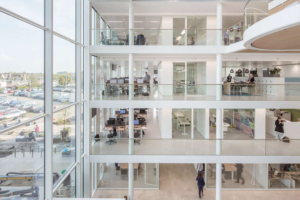 The town hall and municipality office were designed such that all logistic movements proceed naturally and intuitively without mutual hindrance. Both buildings have a high degree of flexibility, among other things because of the large, almost column-free floor fields that are easily rearrangeable according to any way of use or interior concept. The installation techniques are fully aligned to this spatial flexibility; for instance by means of the application of climate ceilings, the buildings remain climatologically comfortable throughout, regardless of the type of use or interior arrangement. No matter the arrangement, it is also always easy to connect to the variety of installation-technical facilities such as AC and ICT outlets.