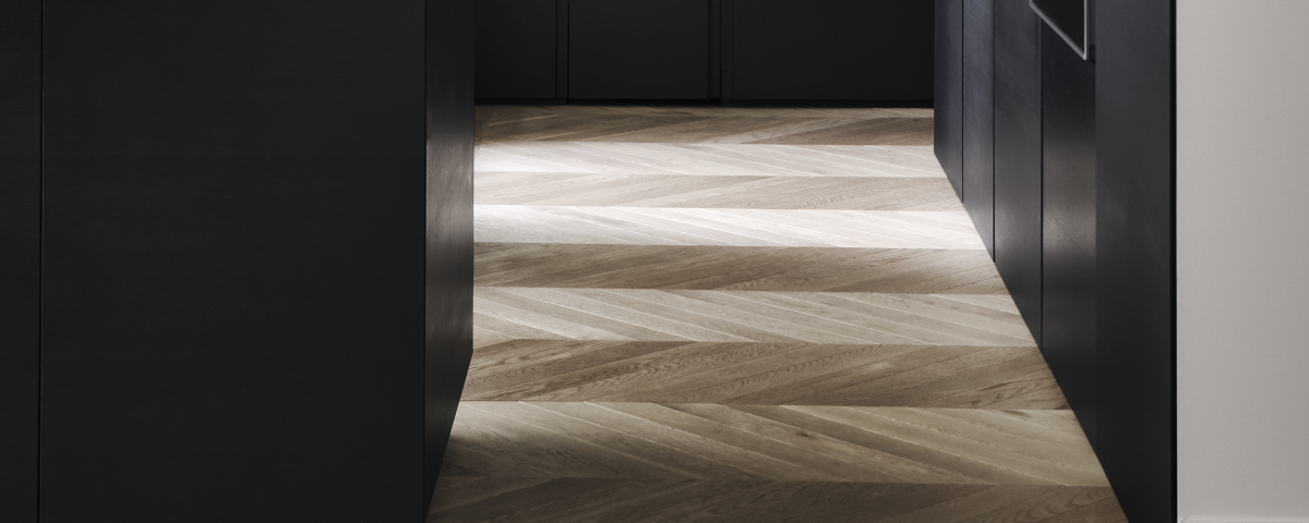 The materials selected for the project help to create a soft atmosphere. The chevron parquet in natural light oiled oak and clean-lined mouldings strike an elegant balance between the house’s original features and new architectural elements.