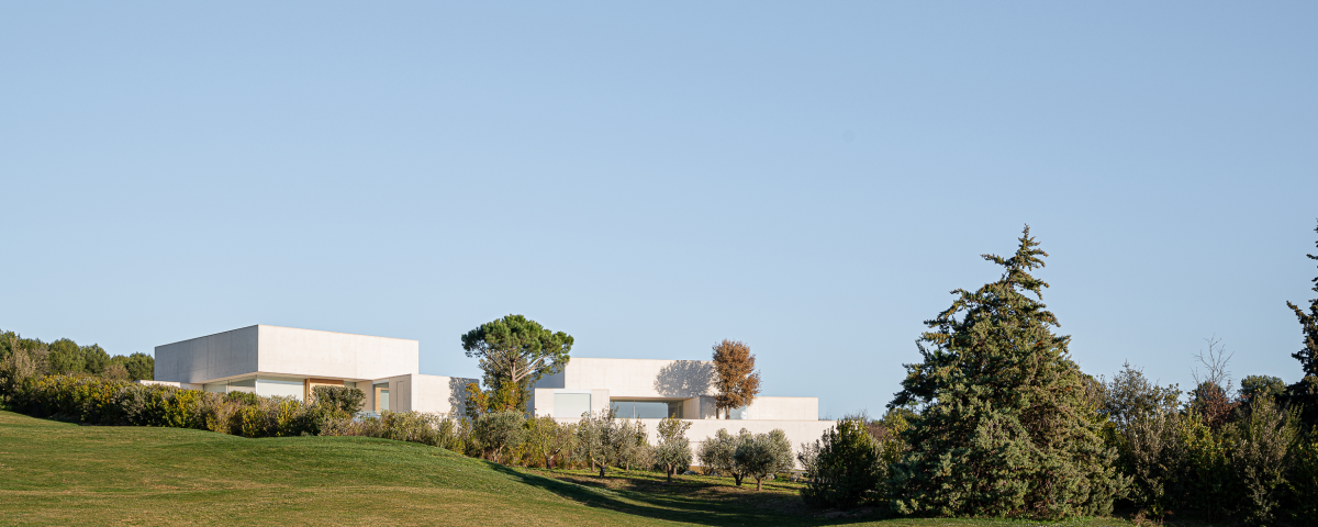 The villas face in the direction of the landscape, with its luxuriant and fragrant sundrenched nature. Nestled against a wooded hillside, this inhabited calcareous spur emerges; floating. The houses powerful presence is drawn from the exhilarating confrontation with the powerful and sensitive natural environment.