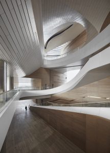 Ben van Berkel: “The way the wind is guided through the building in order to cool down the interior is also metaphorically articulated in the design. Within the internal wind funnels, it is almost as though you can see the wind swirling around within the architecture that surrounds you.”